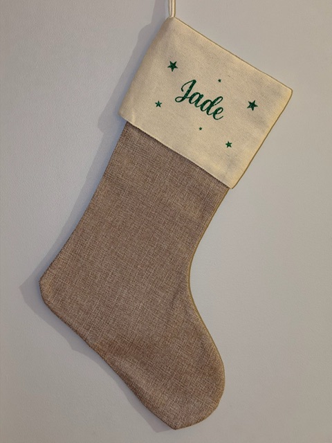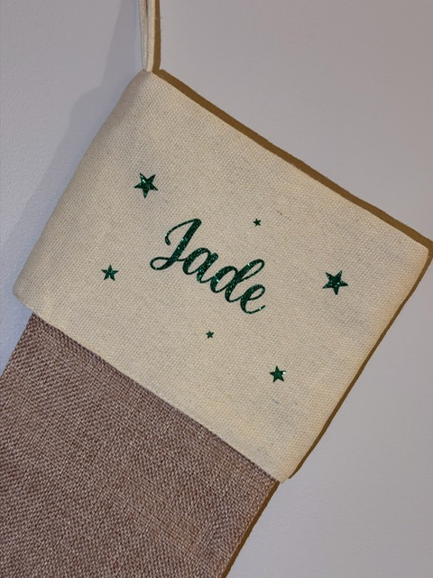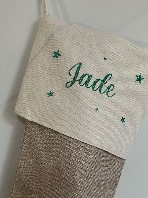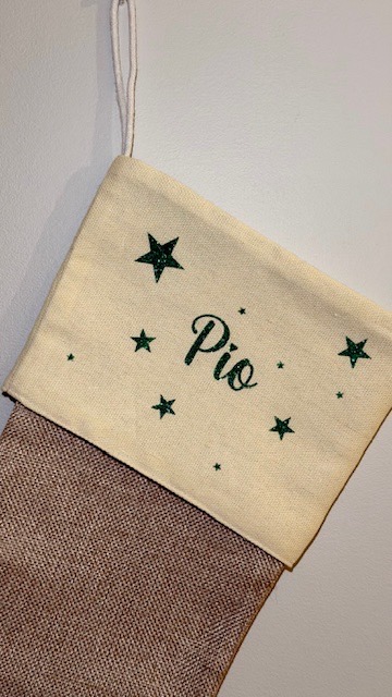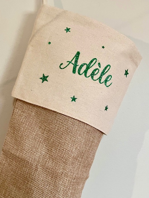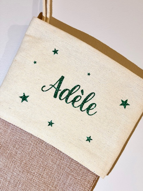 Botte de Noël personnalisée -Prénom vert pailleté